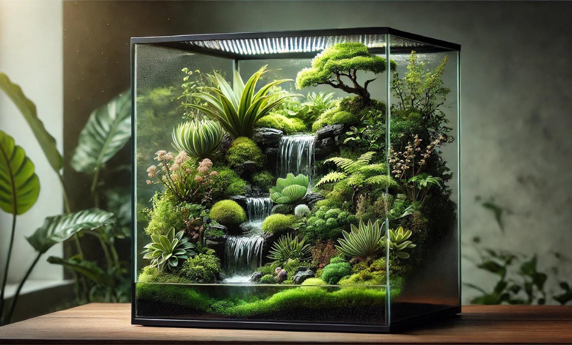 ایجاد یک تراریوم با محوریت المانهای آبی، مناسب برای گیاهانی که به رطوبت بالا نیاز دارند: