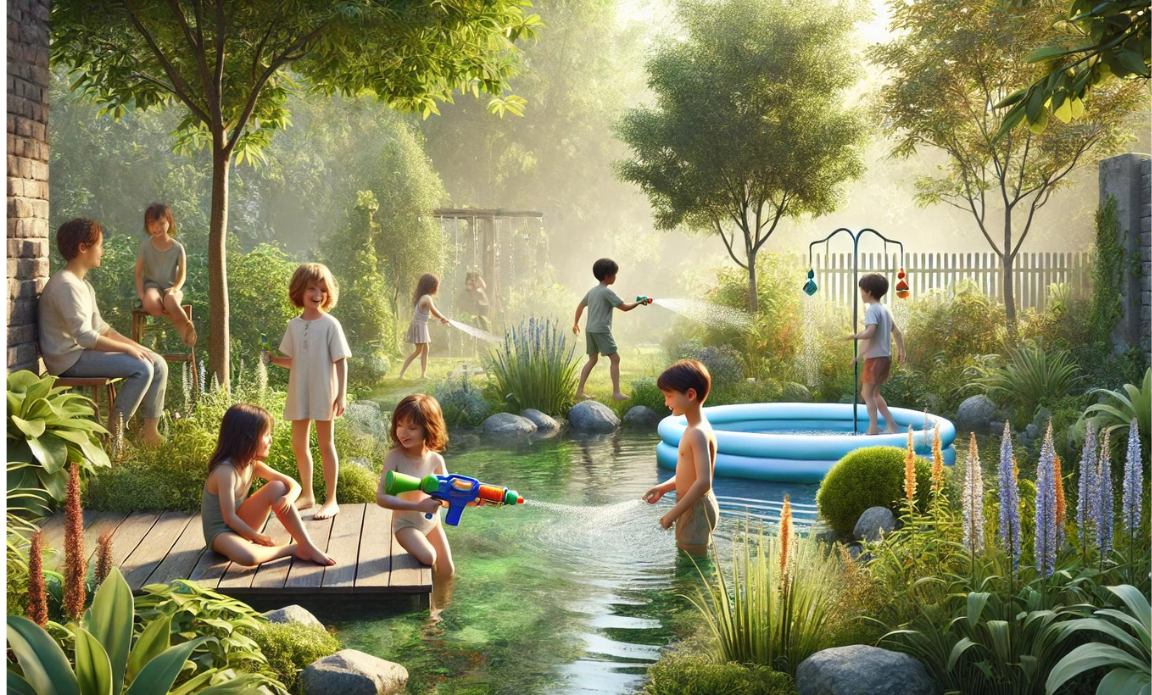 برپایی جنگهای آب پاش و سرگرمیهای آبی در حیاط یا باغ